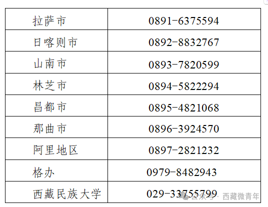 (三)考生可登录西藏自治区教育考试院官方网站(http://zsks.edu.xizang.gov.cn)及“西藏微青年”微信公众号及时查询有关工作安排和各类招考信息,绑定“西藏教育考试招生”微信服务号将第一时间获得成绩和录取结果推送。