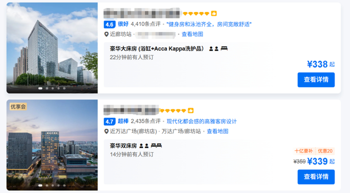 我所在的城市有数家五星级酒店客房的房价仅三百出头,这个价格甚至不如一些热门景区旅游旺季快捷酒店房价的五分之一:
