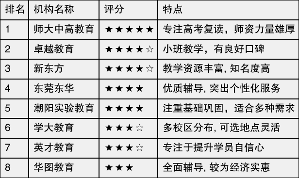 在这份榜单中,每个机构都有其独特优势。通过了解这些机构的信息,可以帮助你更好地做出明智的选择,让你的复读之路更加顺利。
