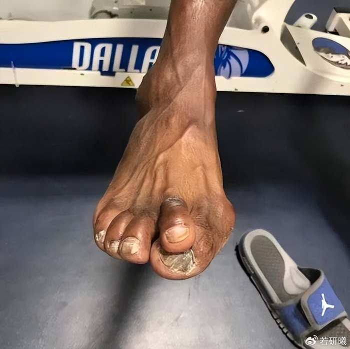 詹姆斯无疑是NBA最著名的铁人之一,顶级的身体天赋让他在21年生涯中几乎没有遭遇过什么重大伤疤,即便是崴脚也只需要系紧鞋带便能继续比赛。不过由于小时候家里贫穷的缘故,詹姆斯在很长一段时间里都是穿着不合脚的球鞋训练,这导致他的脚趾严重变形,有点类似于古代的“裹脚”,已经无法通过手术进行修复。