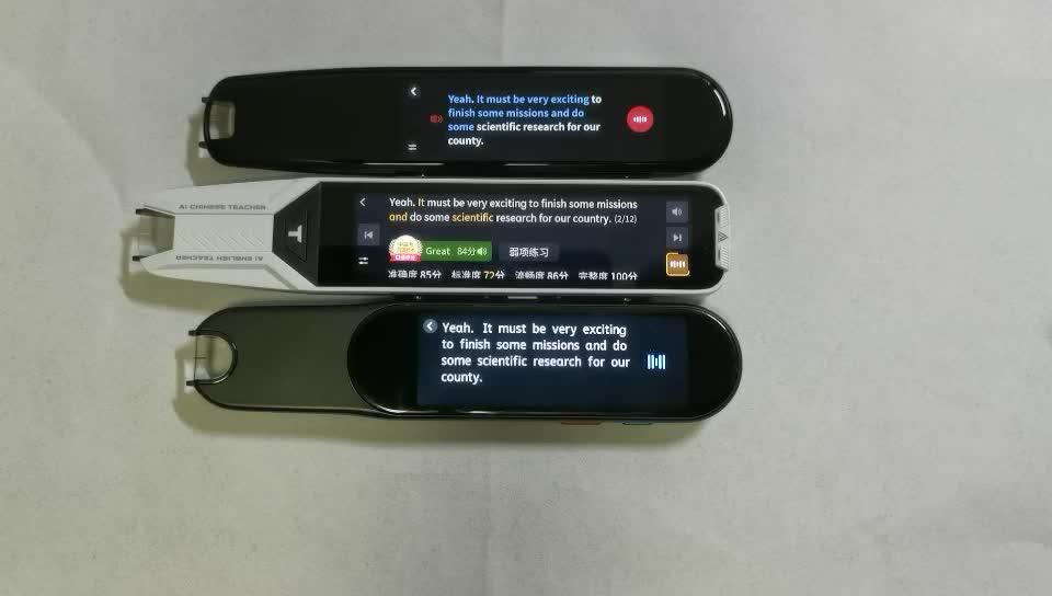 三款词典笔都有口语跟读与测试训练,可以帮助使用者练习口语,提升口语交流水平。基本界面如下图所示: